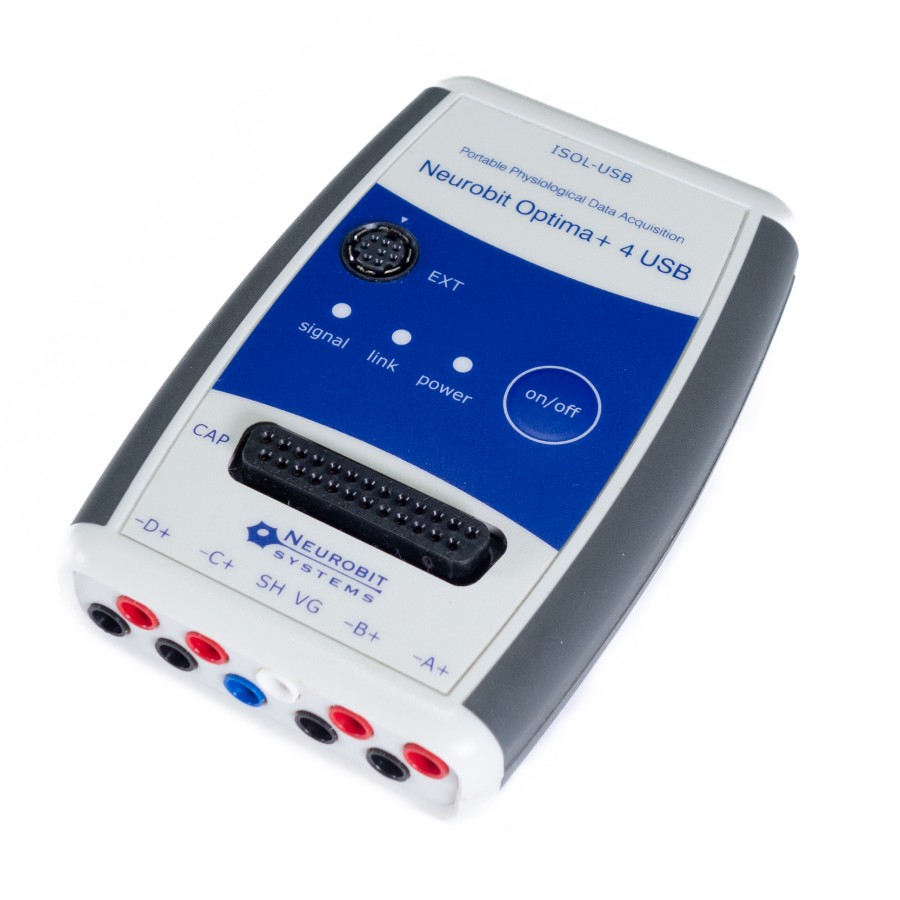 Neurobit Optima+ 4 USB 是一个 4 通道、多功能放大器,不仅可以记录 EEG,还可以记录其他信号如 HEG。